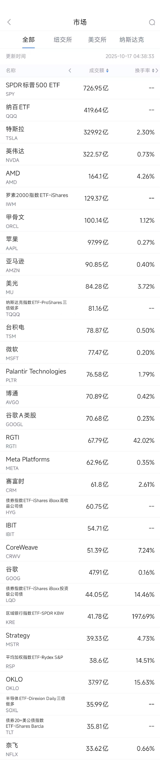 排名第20位的Netflix收涨1.64%,交易额为33.62亿美元。招商证券国际发布报告,维持 Netflix 的目标股价为 1,215 美元,投资评级为“增持”。该行指出,Netflix有足够的内容储备来支持下半年的强劲增长。第四季将推出《怪奇物语》、《我们不是为我们而生》、《外交官》和《NFL Live》等重磅节目。流媒体继续占据观众份额;与Spotify的合作将进一步丰富内容生态系统,进军播客领域。该银行预计第三季度业绩和重磅计划的发布将推动第四季度股价上涨,从而导致 2026 年初股价上涨。